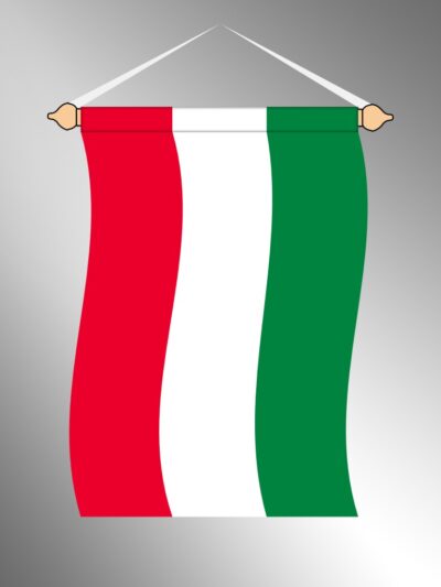 Felül bújtatóval ellátott, álló, kültéri magyar zászló
